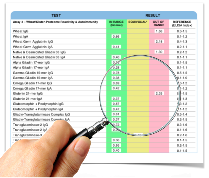 Patients who have celiac disease or a non-celiac gluten intolerance are more likely to react to dairy proteins and some of the other proteins in this lab test. I recommend this test for patients if they have tested positive to the Cyrex Array 3 test. I also recommend this test to patients who have done the elimination diet and are still unsure about whether they are reacting to dairy or some of the other foods in this test. If a patient tests positive for one or more of the foods in this test, the patient won’t necessarily have to remove that food from their diet for the rest of their life. We may remove the foods they are reacting to in this test while they are treating some other underlying gut problems. We may bring those same foods back into their diet later and then retest them with Cyrex Array 4 again.